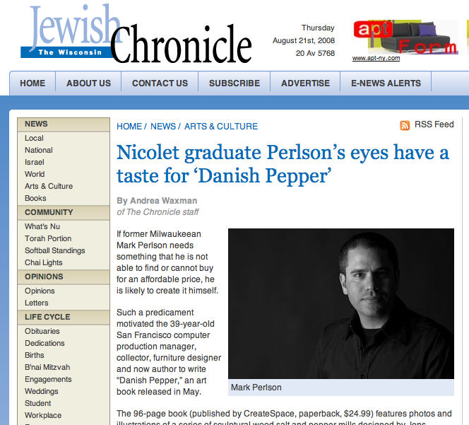 The Wisconsin Jewish Chronicle has published a nice profile article about me and the journey I took to arrive at my current position of Danish Pepper prominence.  My grandfather was the editor of the Chronicle back in the day, so it’s nice to see a photo of me in the paper he was so involved with.
