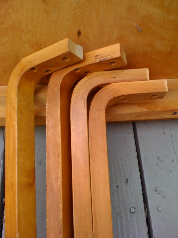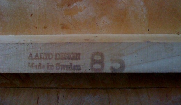 Another weekend, another garage sale score. As I was running errands before running off to Sonoma for the weekend, I couldn’t help but stop by a garage sale in the ‘hood. There was an old plywood table and a quick glance under it confirmed my suspicions: Alvar Aalto.