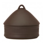 Flamestone was originally designed by Jens Quistgaard around 1957 as the first in a long string of dinnerware lines from Dansk.  It’s ability to go from oven to table was highly touted as something new, a big part of Dansk’s vision to push a new modern style of dining and entertaining.  The outside of the pieces have a rustic rough “burnt umber” finish while the insides are finished in white porcelain so the food has an appropriate surface to sit on.  While modern in design and application, the pieces have a timeless look and feel, almost as primitive as they are modern.