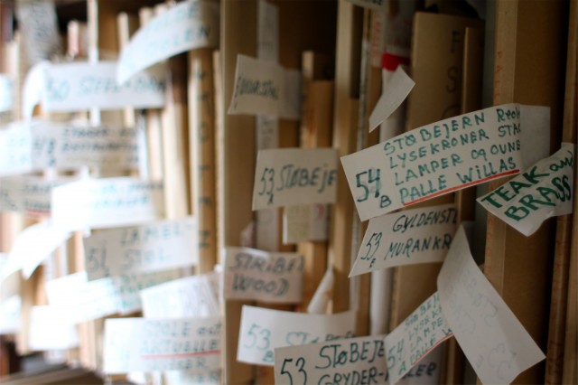 One interesting thing Henriette showed us were these hand cut letters. These would appeal to anyone who appreciates typefaces and handiwork. JHQ designed the lettering on the original Dansk logo, and it became his signature alphabet – you saw it on the sign on the outside of the garage. He made that sign from these metal letters that were cut and filed from sheet metal by JHQ himself. He did a lot of work like this with a piece of metal, a small metal-cutting saw, and a file and made these amazingly perfect works. They were remarkable to hold, and stand as a true testament to both JHQ’s mastery of numerous design disciplines and his amazing craftsmanship.